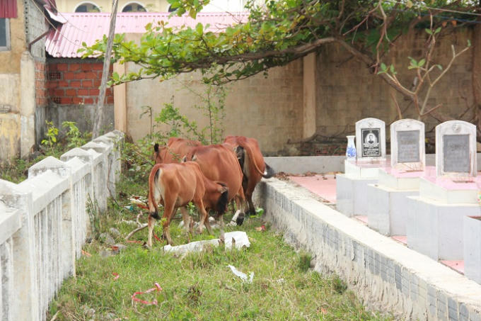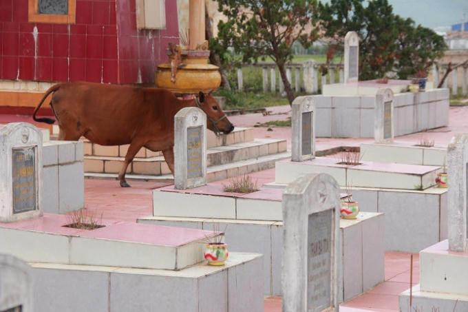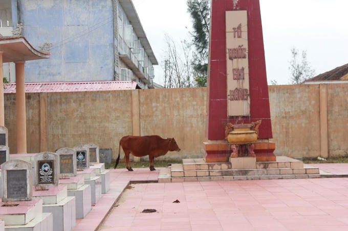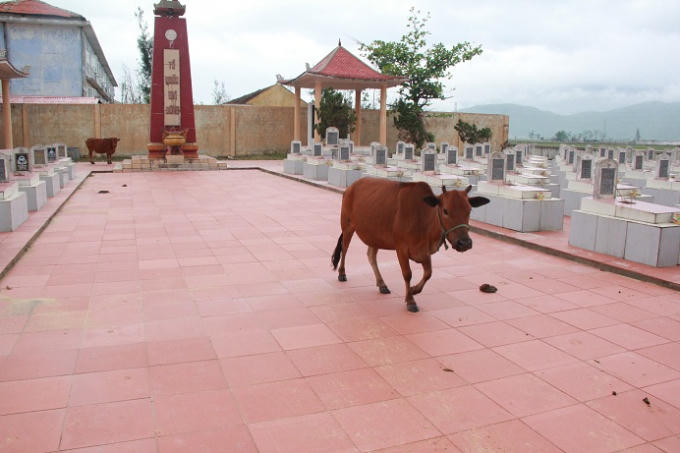 Về nguyên nhân để đàn bò vào phá khu nghĩa trang liệt sỹ, ông Khanh phân trần: “Tình trạng này trước kia không có, nó chỉ mới diễn ra sau cơn bão số 10 vừa qua. Hơn 50 mét tường rào bao quanh khu nghĩa trang bị đổ sập do bão, cộng thêm không có người quản trang nên mới xảy ra tình trạng trên”.