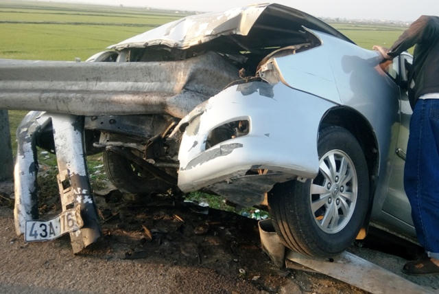 Khi đến Km 630 Quốc lộ đoạn đi qua xã Bắc Trạch, huyện Bố Trạch thì mất lái, lao vào lan can bên đường.