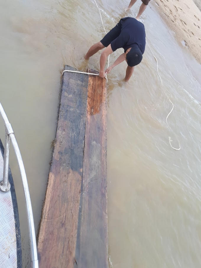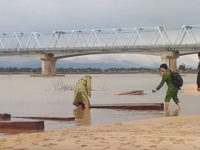 Sau cả đêm bảo vệ hiện trường, 6h sáng cùng ngày Đội Cảnh sát Đường Thủy đã thuê những thợ lặn có kinh nghiệm của địa phương đến hiện trường để đưa gỗ lên bờ.