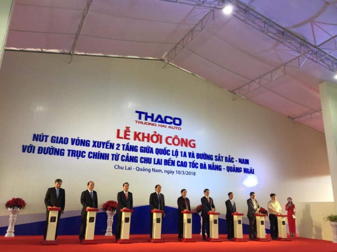 Sáng 10/3, Công ty CP Ô tô Trường Hải (THACO) tổ chức Nút giao vòng xuyến 2 tầng giữa Quốc lộ 1A và đường sắt Bắc Nam với đường trục chính từ Cảng Chu Lai đến Cao tốc Đà Nẵng - Quảng Ngãi tại Khu phức hợp Chu Lai - Trường Hải (huyện Núi Thành, tỉnh Quảng Nam).
