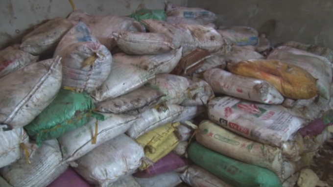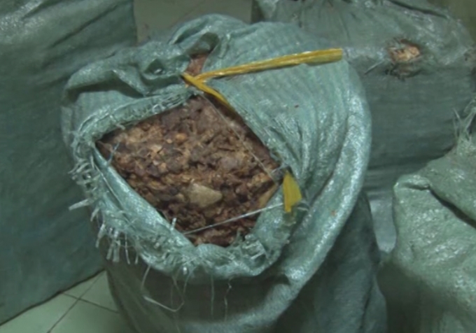 | Hàng trăm bao tải đựng mỡ bẩn được tìm thấy |