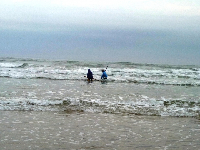 Những ngày gần đây, chúng tôi có mặt tại bãi biển Tam Tiến (huyện Núi Thành, tỉnh Quảng Nam) để tìm hiểu về mùa ốc gạo. Ngay từ tờ mờ sáng, dọc khu vực biển gần bờ, nhiều người dân đã ngâm mình trong sóng biển và cặm cụi cào ốc.