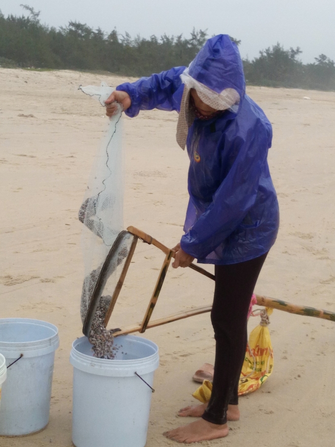 Nhìn bề ngoài, công việc cào ốc có vẻ đơn giản nhưng đòi hỏi người cào ốc phải có sức khỏe tốt và phải có tay nghề. Theo chị Thiên, hôm nào trời nắng ấm, biển ít sóng gió thì cào được nhiều ốc hơn những ngày khác.