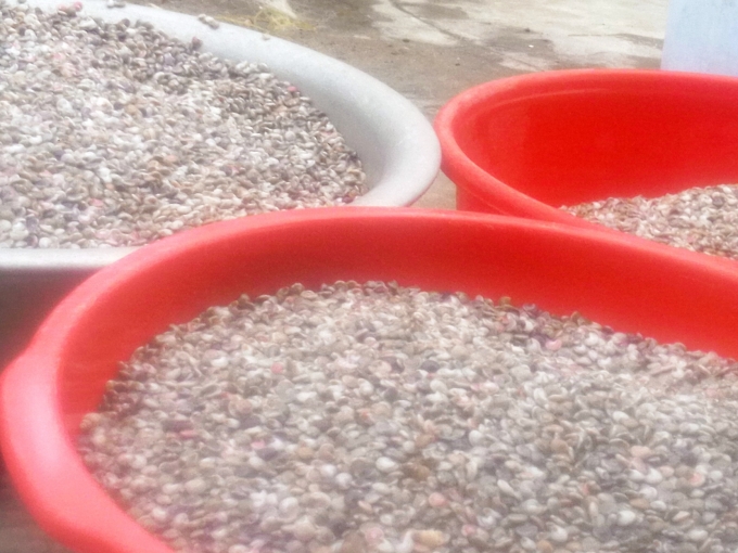 Trung bình mỗi ngày chị Phượng cào được gần 7 thùng ốc gạo, mỗi thùng bán giá 100 ngàn đồng, chị thu được 700 ngàn đồng. Nếu có thời gian sàng lọc, phân loại ốc gạo ra theo kích thước thì bán giá cao gấp đôi.