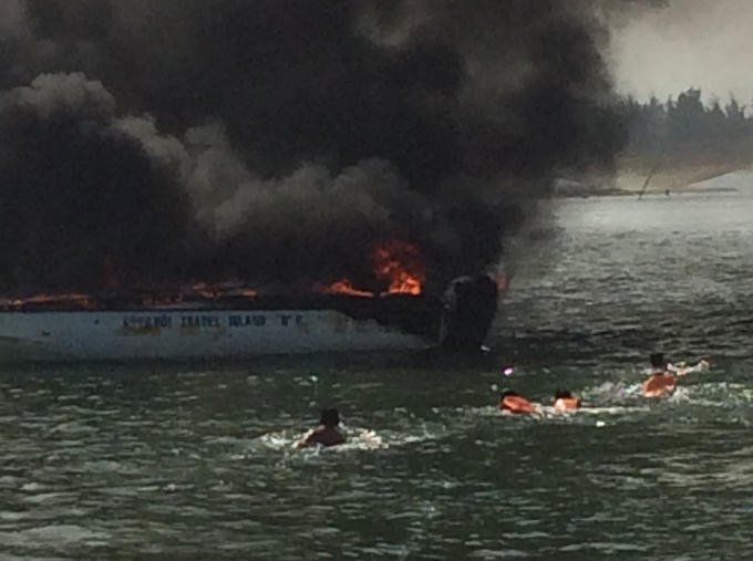 Đến 10h, một tàu cá của ngư dân được điều động đến, phun vòi rồng để dập tắt hoàn toàn đám cháy. Tuy nhiên, lúc này chiếc tàu du lịch đã bị cháy rụi. Rất may, không có thiệt hại về người.
