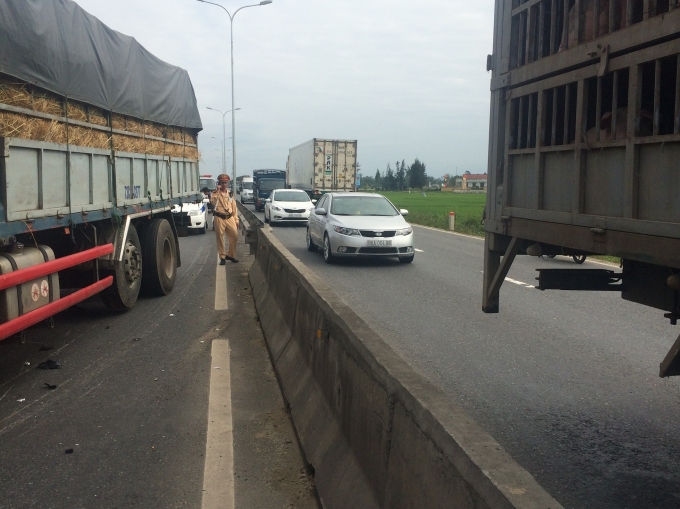 Vụ tai nạn giao thông khiến chiếc xe tải quay ngang giữa đường gây ách tắc giao thông hàng giờ. Nhận được tin báo, lực lượng chức năng đã nhanh chóng có mặt khám nghiệm hiện trường và điều tiết giao thông.