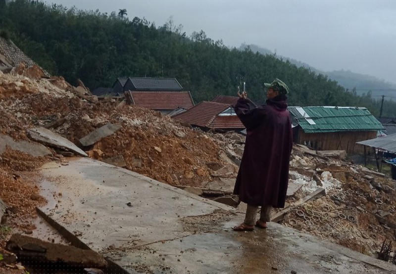 Ngoài ra, sạt lở núi còn xảy ra tại các thôn Trà Lương, Trà Linh (xã Hương Trà) khiến 9 ngôi nhà bị hư hỏng, trong đó có 1 nhà sập hoàn toàn.