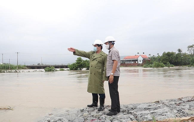 Còn tại thị xã Đức Phổ, Phó Chủ tịch UBND tỉnh Trần Phước Hiền kiểm tra tính hiệu quả của công trình Kè chống sạt lở bờ sông Lò Bó và Kè chống sạt lở sông Trà Câu trong việc đảm bảo an toàn tính mạng và tài sản của người dân.