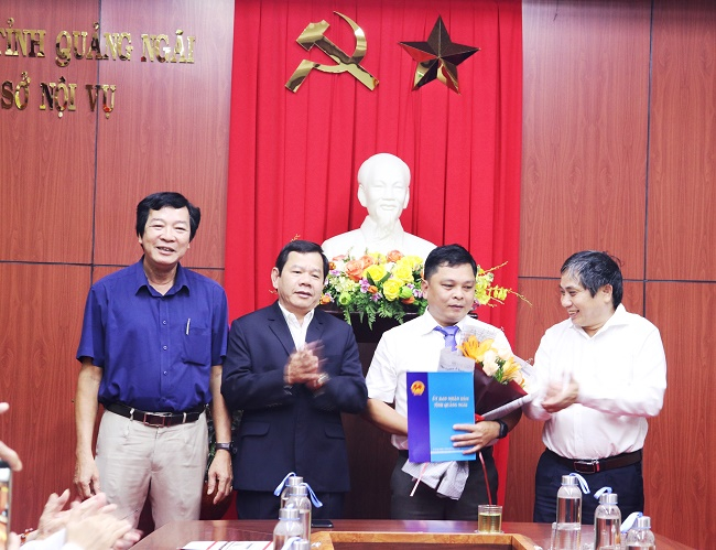 Ông Võ Xuân Hòa nhận quyết định bổ nhiệm Phó Giám đốc Sở Nội vụ tỉnh Quảng Ngãi. (Ảnh: CTTQNgai).