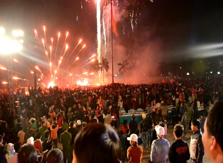 | Pháo hoa nổ dưới nền đất gây cháy và làm bị thương 6 người dân xem bắn pháo hoa đêm giao thừa. |