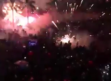 Cảnh tượng pháo hoa bắn tung tóe vào người dân.