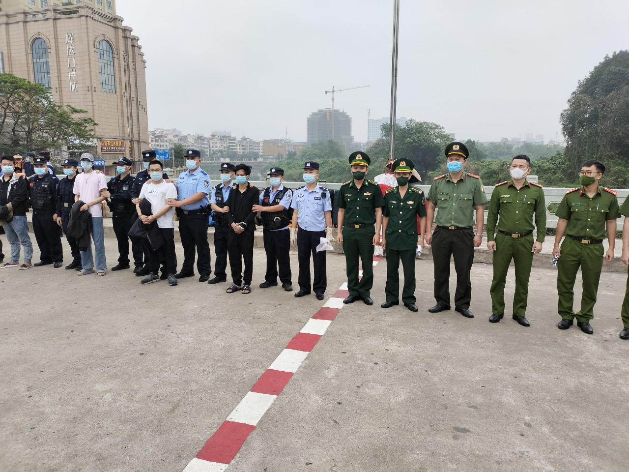Lực lượng chức năng TP Móng Cái (Việt Nam) bàn giao 4 đối tượng ruy nã người Trung Quốc cho Công an TP Đông Hưng, Trung Quốc.