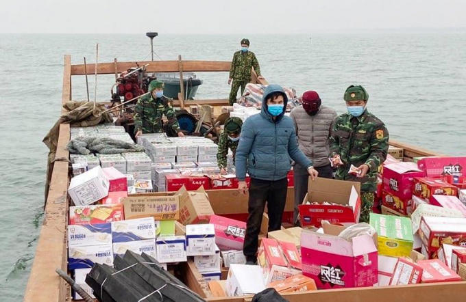 Ngày 31/1, Hải đội 2, Bộ đội biên phòng tỉnh Quảng Ninh cho biết vừa bắt giữ 1 phương tiện vận chuyển số lượng lớn hàng hóa nhập lậu trên biển Cụ thể, vào hồi 3 giờ, ngày 31/1/2021, tại khu vực cửa sông Bắc Luân thuộc phường Trà Cổ, TP Móng Cái, Đội Tuần tra kiểm soát của đơn vị trong khi làm nhiệm vụ đã phát hiện, bắt giữ 1 phương tiện là bè xốp tự chế, không số hiệu kiểm soát, trọng tải khoảng 10 tấn, lắp 2 máy, tổng công suất 215 Cv, đang vận chuyển hàng hóa từ Trung Quốc về Việt Nam.