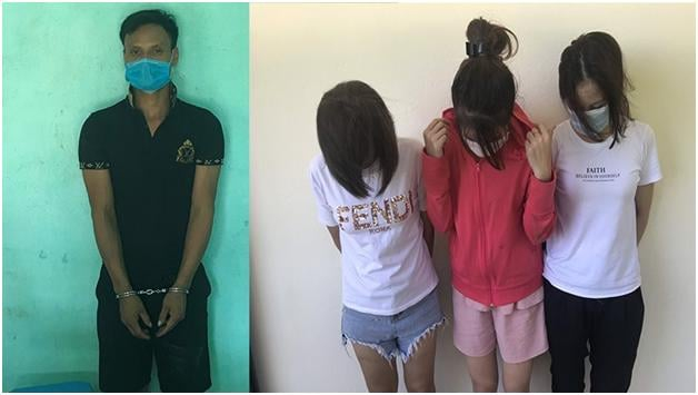 Phạm Xuân Đông cùng ba người phụ nữ bị tạm giữ.