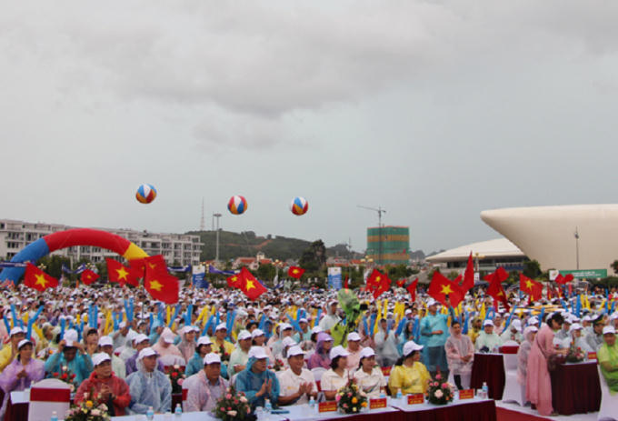 Theo ghi nhận, trong buổi sáng hôm nay (2/9 - Ngày Quốc Khánh), thời tiết tại Quảng Ninh nhiều nơi có mưa, nhưng vẫn không ngăn nổi bước chân của hàng nghìn các cổ động viên cổ vũ cho thí sinh Nguyễn Hoàng Cường. Đặc biệt, dù trời mưa, nhưng từ các đồng chí lãnh đạo địa phương cho đến các em học sinh, người dân đã mặc áo mưa để “tiếp lửa” cho thí sinh đến từ Đất Mỏ.