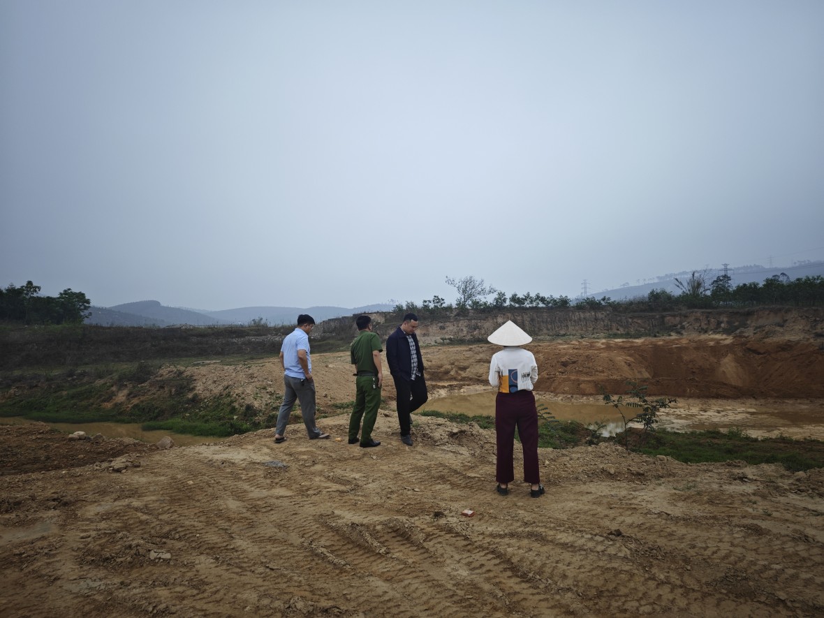 | Lãnh đạo UBND cùng Công an xã Sơn Dương kiểm tra hiện trường sau khi nhận được thông tin phản ánh. |