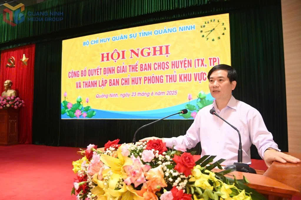 Sáng 23/6, Bộ Chỉ huy Quân sự (CHQS) tỉnh Quảng Ninh tổ chức hội nghị công bố quyết định giải thể Ban CHQS cấp huyện và thành lập Ban Chỉ huy Phòng thủ khu vực, đồng thời công bố quyết định thành lập tổ chức Đảng của các Ban CHQS Phòng thủ khu vực.