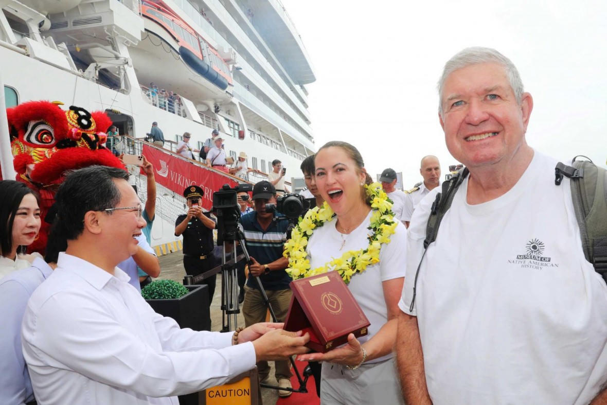 Vị khách thứ 3 triệu đến Hạ Long tên Tina Bogle (quốc tịch Mỹ), đi cùng chồng là Davia Bogle và 900 khách du lịch, chủ yếu quốc tịch Mỹ, có hành trình trên tàu Viking Orion dọc châu Á.