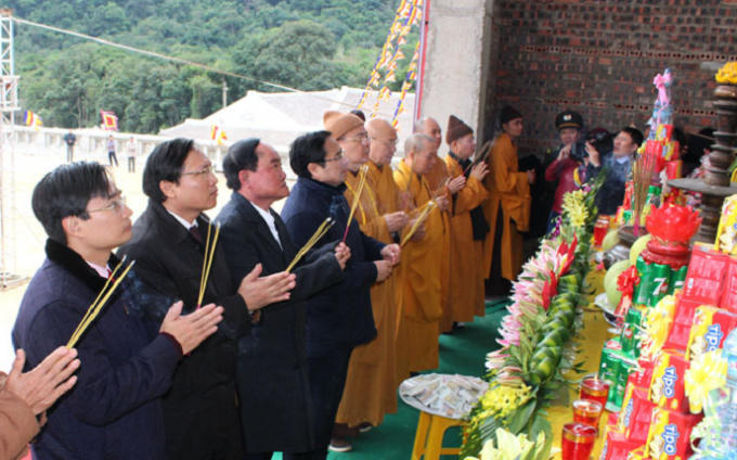 Tham dự buổi lễ cất nóc có các vị lãnh đạo Đảng, Giáo hội Phật giáo Việt Nam và các vị lãnh đạo địa phương.