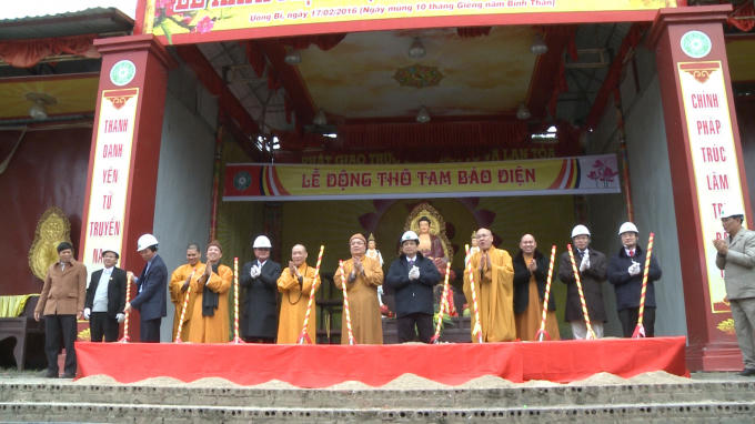Sau khi thực hiện nghi lễ cất nóc, các đại biểu cũng tiến hành động thổ xây dựng Tam bảo điện, là một hạng mục thuộc công trình Cung Trúc Lâm Yên Tử.