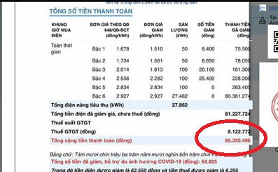 Thông báo tiền điện tháng 5 của hộ gia đình bà Gái lên đến gần 90 triệu đồng.