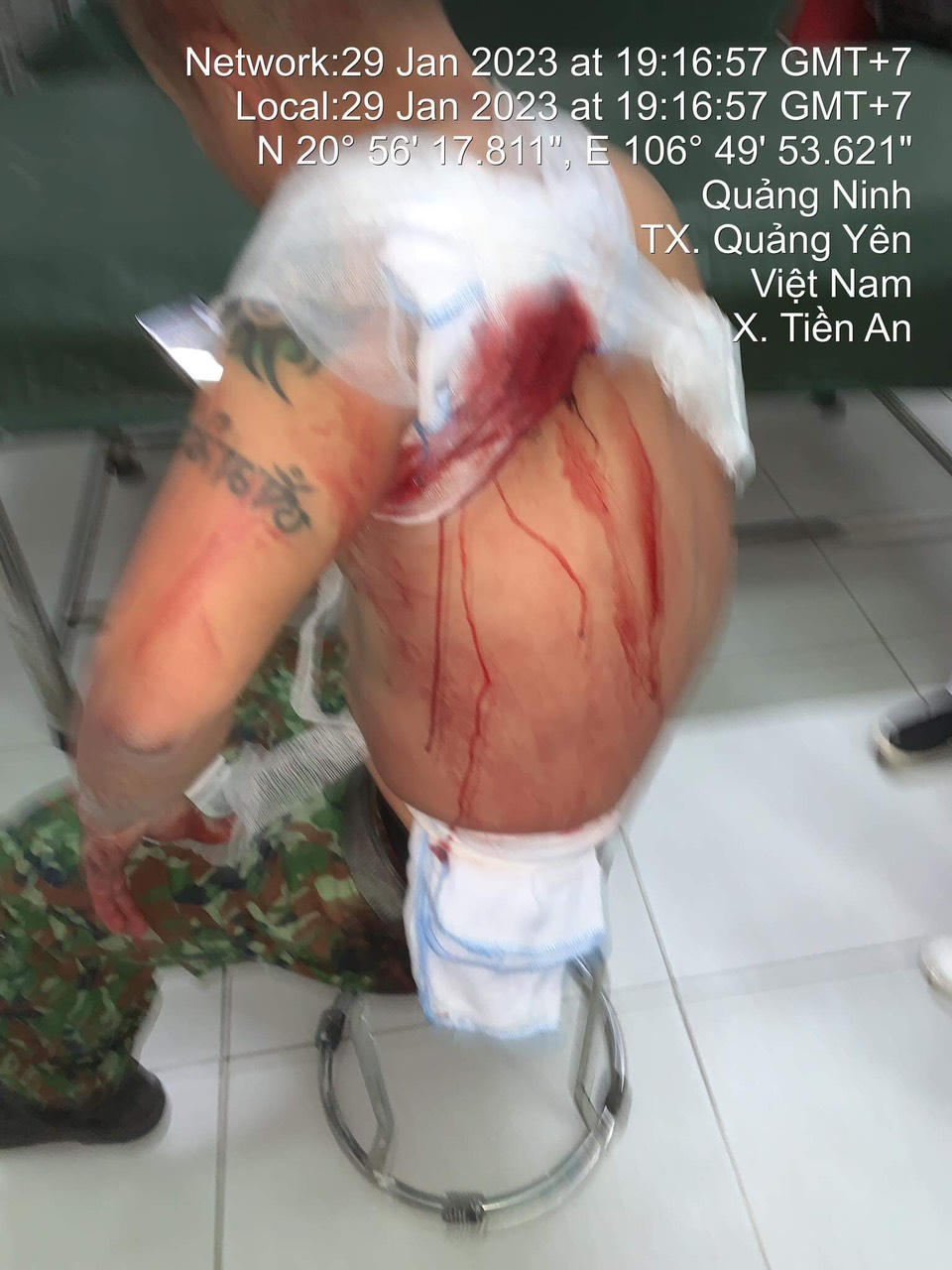 Ngay sau khi bị đâm nhiều nhát anh Tùng được băng bó để cầm máu rồi đưa đi cấp cưu.