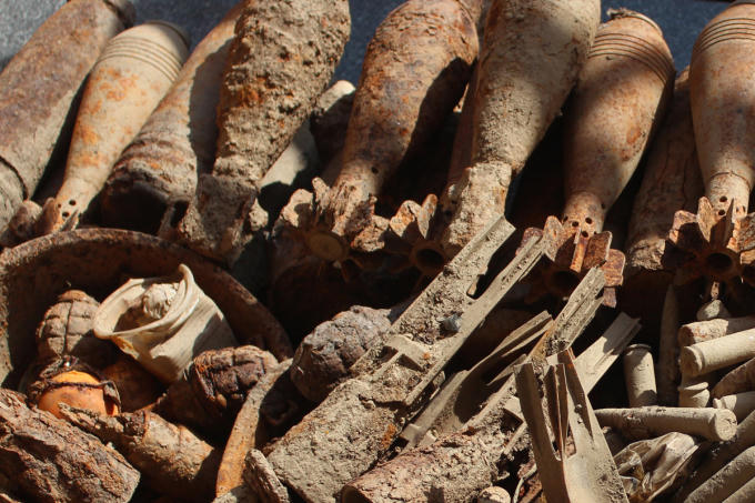Hàng trăm quả đạn, pháo, cối, vật liệu nổ trước khi huy nổ.