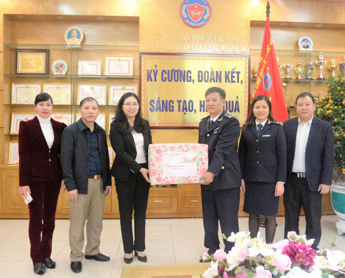 Chủ tịch UBND huyện tặng quà các cán bộ, chiến sĩ lực lượng Hải quan.