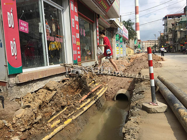 Được biết, từ khoảng 3 tháng nay, tại công trình chỉnh trang tuyến phố đường Quang Trung từ cầu sông Sinh đến cầu sông Uông, phường Quang Trung, TP.Uông Bí (Quảng Ninh), việc đào bới đường sá diễn ra ngổn ngang ảnh hưởng nghiêm trọng tới cuộc sống của người dân sống hai bên đường.