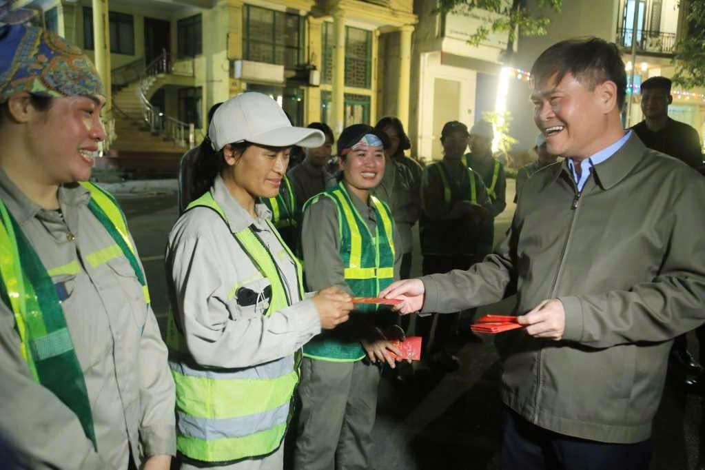 Cũng trong tối Giao thừa, lãnh đạo tỉnh đã trực tiếp thăm hỏi, động viên công nhân vệ sinh môi trường đang làm việc trên địa bàn phường Hạ Long. Sau khi chia sẻ về đời sống, công việc và việc chuẩn bị Tết của người lao động, Chủ tịch UBND tỉnh bày tỏ sự trân trọng trước những đóng góp thầm lặng nhưng rất quan trọng của lực lượng công nhân môi trường – những “chiến sĩ áo xanh” góp phần giữ gìn đô thị sáng – xanh – sạch – đẹp, vì sức khỏe cộng đồng.