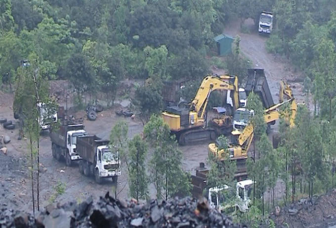 Trong quá trình mở đường công vụ phục vụ riêng cho việc vận chuyển vật liệu xây dựng Chùa Hồ Thiên xuất hiện tình trạng khai thác than trái phép.