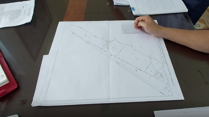 Lãnh đạo UBND xã Vạn Ninh phân tích bản đồ thửa đất tại buổi làm việc với phóng viên.