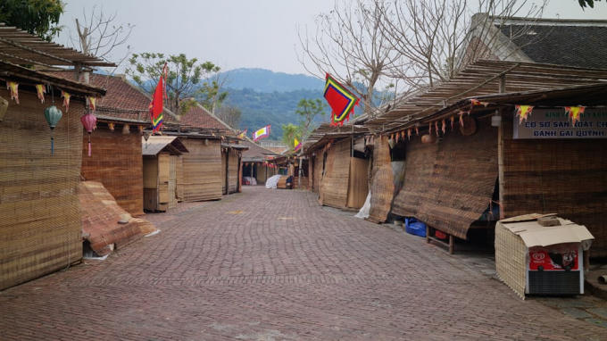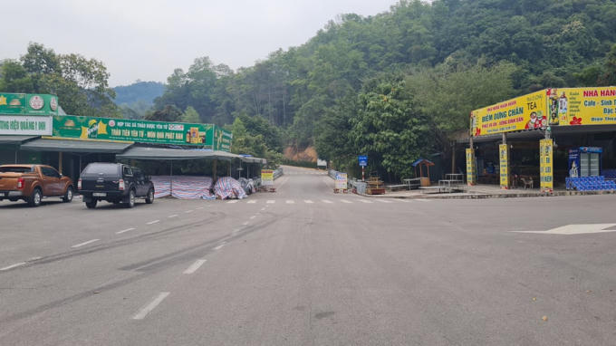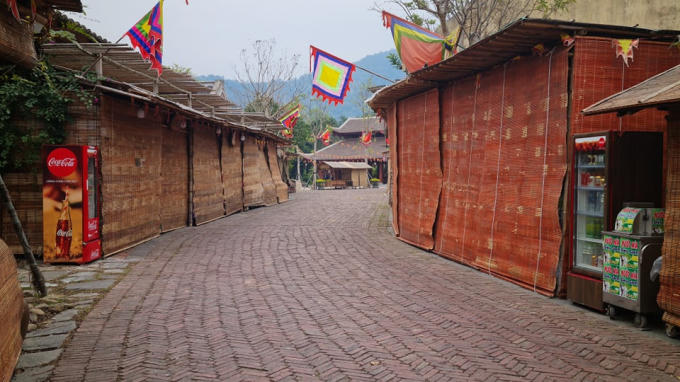 Khung cảnh các hàng quán tại khu dịch vụ ăn uống tại Trung tâm văn hóa lễ hội dịch vụ Yên Tử không một bóng dáng du khách.