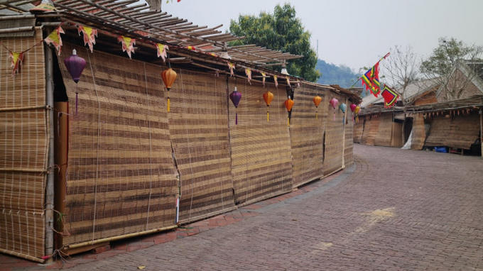 Các cửa hàng không có khách đành dùng phên che trong ngày đầu năm mới.