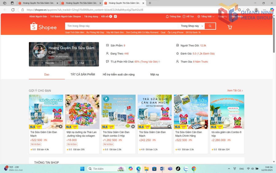 Theo kế hoạch kiểm tra hoạt động thương mại điện tử, Đội Quản lý thị trường (QLTT) số 4, Chi cục QLTT Quảng Ninh phát hiện cơ sở kinh doanh “Hoàng Quyên Trà sữa Giảm cân” cùng tài khoản bán hàng trên Shopee có dấu hiệu vi phạm.