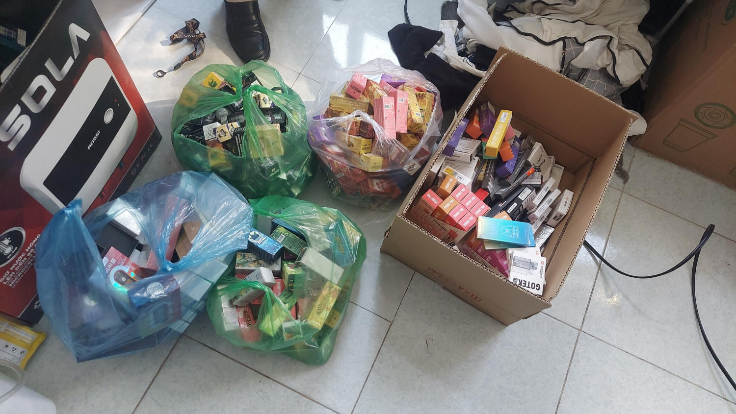 Kiểm tra 3 cơ sở kinh doanh, lực lượng chức năng thu giữ 487 cây thuốc lá nung nóng sử dụng sợi đốt và 329 lọ tinh dầu thuốc lá không có hóa đơn chứng từ chứng minh nguồn gốc xuất xứ.