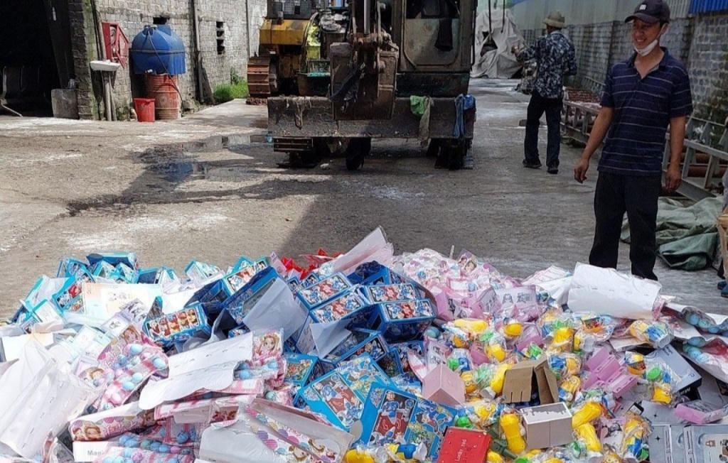 Tiêu hủy tang vật liên quan đến buôn lậu, gian lận thương mại và hàng giả. (Ảnh: Đội Kiểm soát Hải quan số 1, Cục Hải quan Quảng Ninh cung cấp)