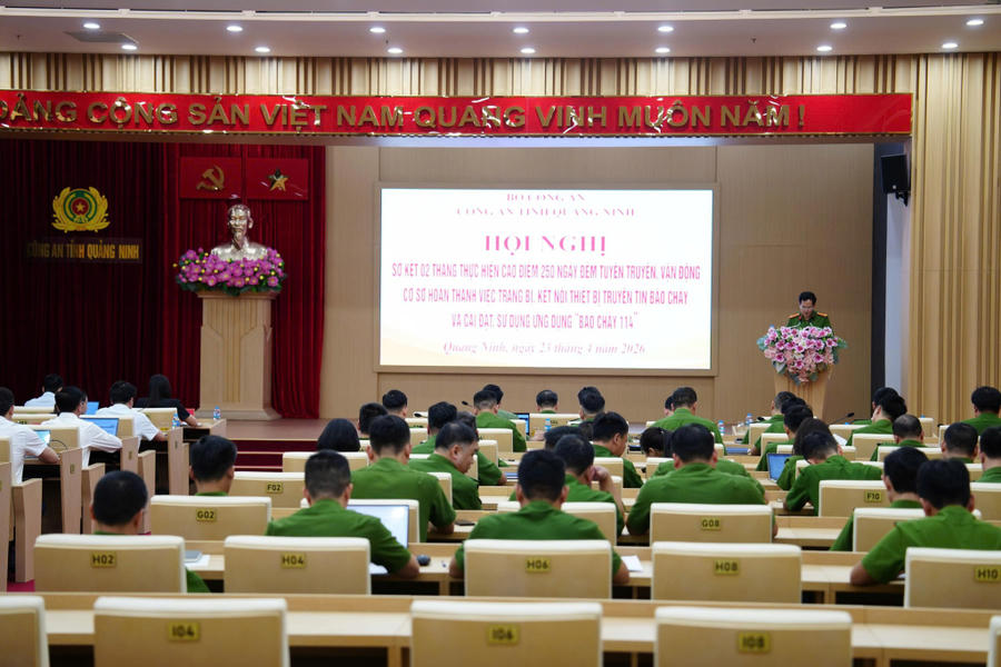 Chiều 23/4, Công an tỉnh Quảng Ninh tổ chức hội nghị sơ kết 2 tháng thực hiện cao điểm 250 ngày đêm tuyên truyền, vận động các cơ sở trang bị, kết nối thiết bị truyền tin báo cháy và cài đặt, sử dụng ứng dụng “Báo cháy 114”.