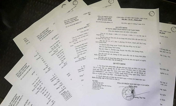 Trong quá trình giải quyết vụ án, TAND huyện Vân Đồn, Quảng Ninh đã ra 8 quyết định phong tỏa tài khoản ngân hàng của hai công ty.