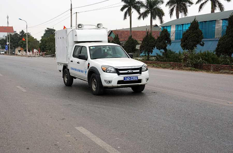 Trung tâm Truyền thông - Văn hóa TX Đông Triều liên tục điều xe phát thanh lưu động tuyên truyền về phòng, chống Covid -19, quy định giãn cách xã hội trên địa bàn TX Đông Triều và phong tỏa đối với xã Bình Dương.