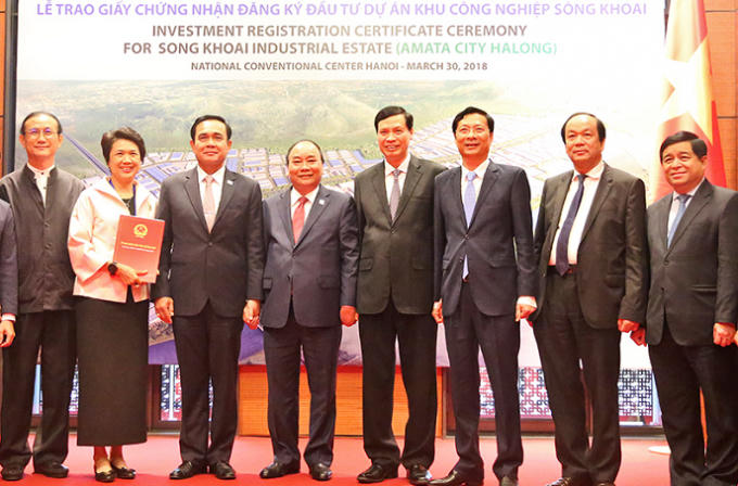 Vừa qua, dưới sự chứng kiến của Thủ tướng Nguyễn Xuân Phúc và Thủ tướng Chính phủ Vương quốc Thái Lan Prayut Chan-O-Cha, tỉnh Quảng Ninh đã trao Giấy chứng nhận Đăng ký đầu tư dự án Xây dựng, kinh doanh cơ sở hạ tầng KCN Sông Khoai, TX Quảng Yên cho các nhà đầu tư Thái Lan.