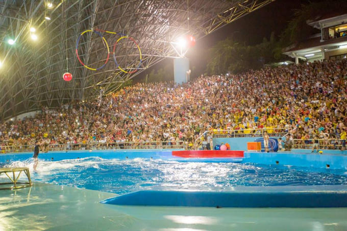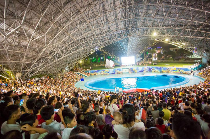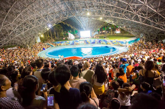 Từ rất sớm, sân khấu của Câu lạc bộ cá heo đã không còn một chỗ trống, đa số khán giả ở đây là các em nhỏ từ độ tuổi dưới 15 cùng gia đình háo hức chờ đợi để xem các tiết mục biểu diễn đặc sắc đến từ những “diễn viên” hải cẩu, sư tử biển và cá heo.