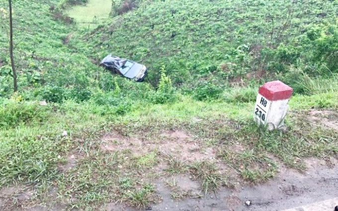 Chiếc xe ô tô Fortuner khi đang lưu thông trên đường, do tránh xe đi ngược chiều đã lao xuống thung lũng. 5 người ngồi trên xe đã may mắn thoát chết.