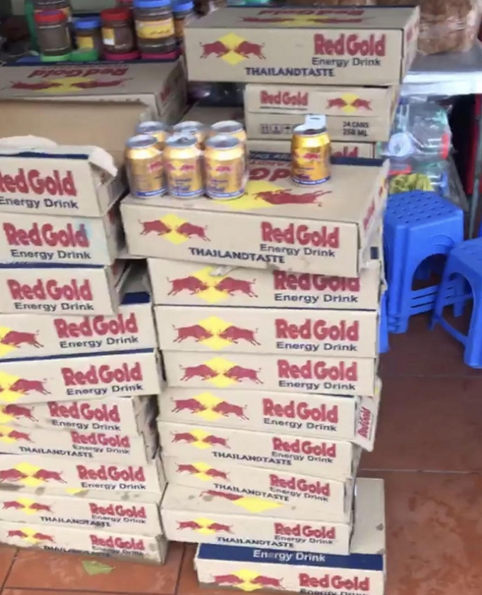 | Số hàng nước tăng lực được cho là giả nhãn hàng Red Bull. |
