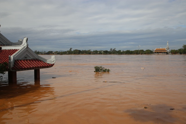 Mặc dù sáng nay vùng đồng bằng không mưa, nhưng nước sông vẫn dâng cao.
