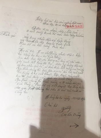 Ông Dũng tiếp tục gặp ông Trần Văn Hoàn – Giám đốc chi nhanh văn phòng đăng kí đất đai huyện Vĩnh Linh để yêu cầu được trả giấy CNQSDĐ cho gia đình thì được ông Hoàn trả lời bằng văn bản: “Chi nhánh văn phòng đăng ký đất đai chỉ có nhiệm vụ lưu giữ còn việc hoàn trả giấy CNQSD đất thuộc thẩm quyền của phòng Tài nguyên và Môi trường huyện Vĩnh Linh.