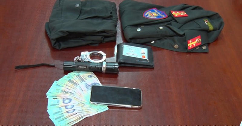 Qua khám xét nơi ở của Lượng, Công an đã thu giữ 1 bộ quân phục Cảnh sát Cơ động; 1 bộ quân hàm cấp bậc thượng sỹ; 1 còng số 8; 1 đèn pin chích điện và số tiền 25 triệu đồng.