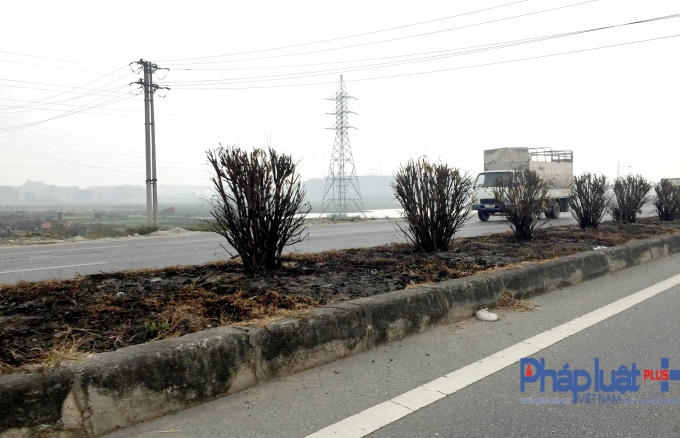 Quốc lộ 18: Nhiều km cây xanh ở dải phân cách bị cháy trụi