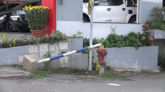 Tại một con hẻm dẫn vào khu phố 13, phường Hố Nai, cây cọc sắt được người dân nhổ hẳn lên, nằm kê đầu lên trụ bơm nước cứu hỏa.