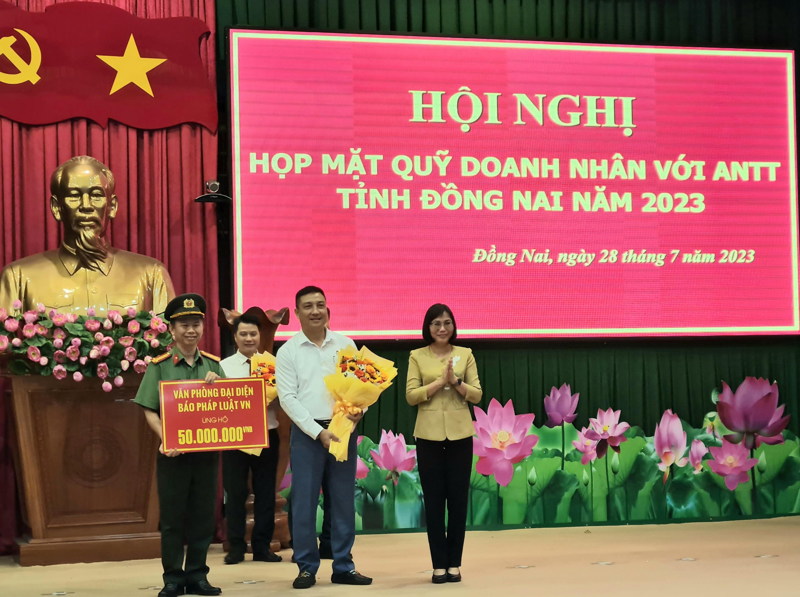 Tại buổi họp mặt, Quỹ Doanh nhân với ANTT tỉnh đã tiếp nhận gần 3 tỷ đồng ủng hộ quỹ của gần 200 doanh nhân, doanh nghiệp, tổ chức tôn giáo trên địa bàn. Trong đó đại diện Báo Pháp luật Việt Nam - Văn phòng Đông Nam Bộ ủng hộ Quỹ số tiền 50 triệu đồng nhằm chung tay xây dựng Quỹ, góp phần thực hiện công tác tái hòa nhập cộng đồng, đảm bảo ANTT tại địa phương.